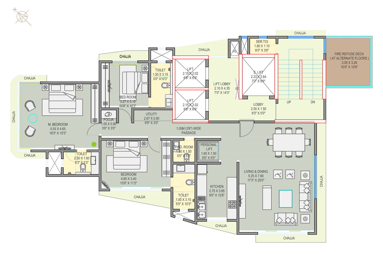 4BHK DUPLEX. 9TH TO 20TH FLOOR. 2207 SQ FT. CARPET AREA.